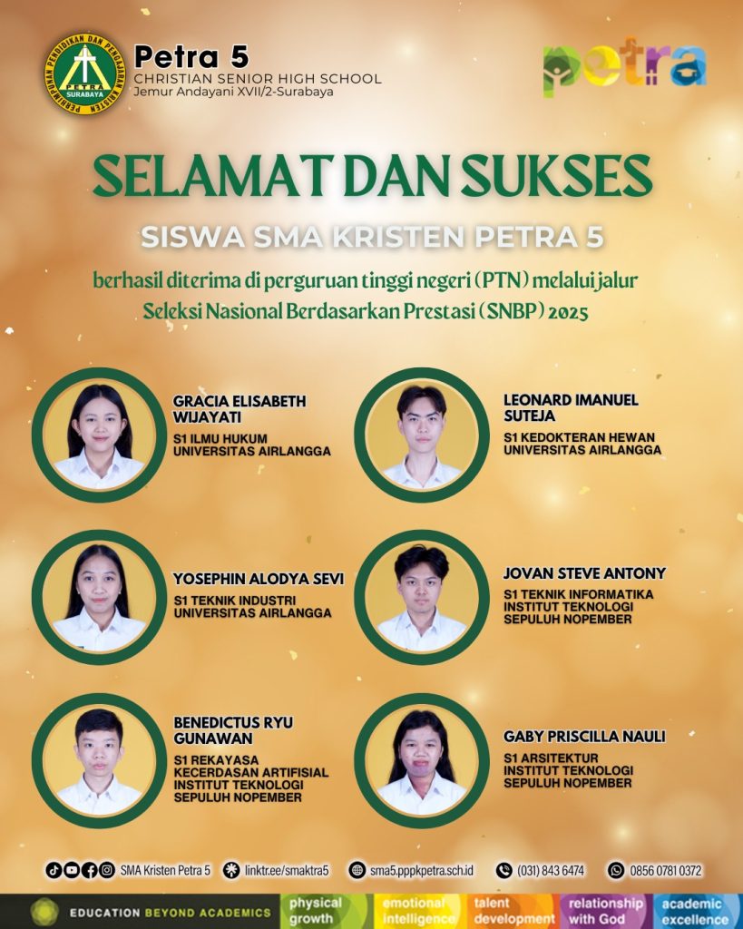Selamat datang di website SMA Kristen Petra 5 Surabaya